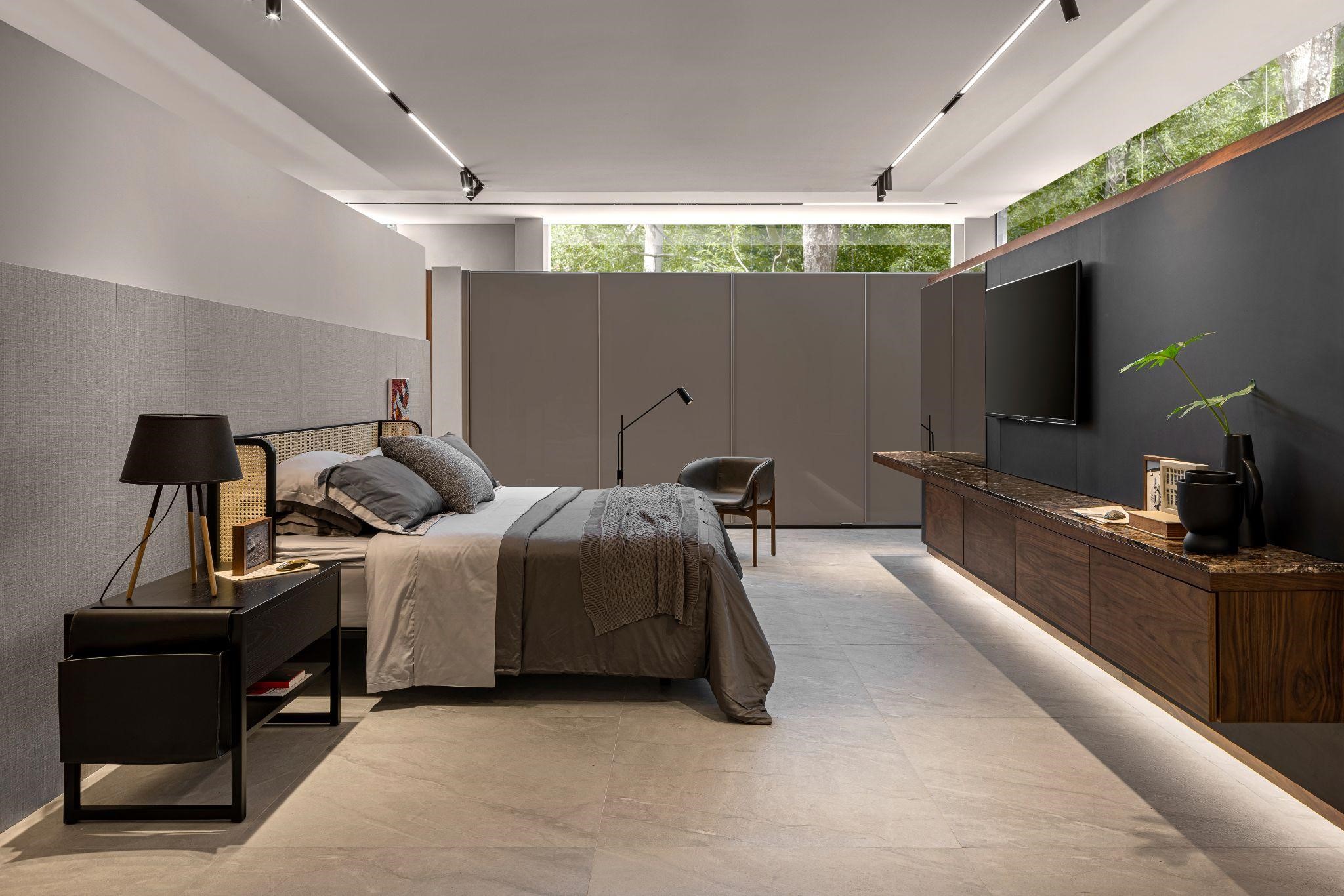Como o quarto necessita de uma iluminação mais indireta, muitas vezes sofremos para visualizar de forma clara todas as nossas peças. Uma solução proposta pelo nosso design feito para viver é a iluminação em LED no cabideiro e sobre os nichos.