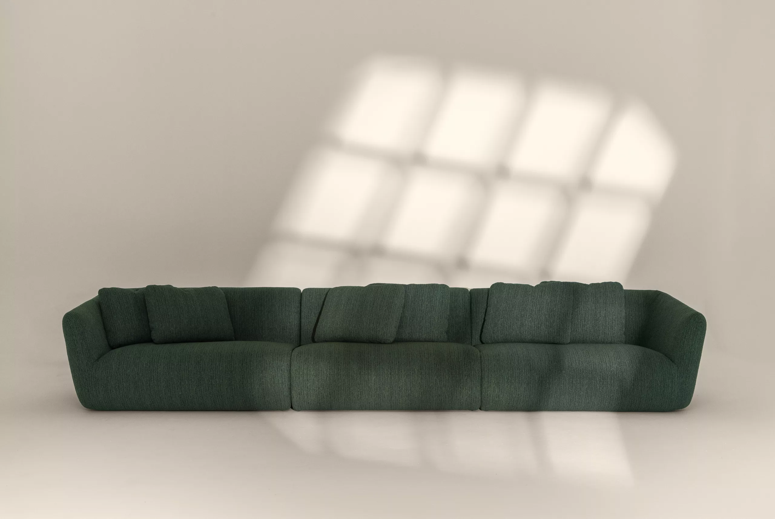 O Sofá Abrigo nasce da necessidade de acolher e desacelerar, criando um espaço de conforto genuíno em meio à rotina. Seu desenho combina forma generosa e semi-arredondada com linhas retas, equilibrando suavidade e firmeza, enquanto as almofadas de encosto soltas permitem ajustes naturais ao corpo. Totalmente revestido em tecido, seu volume marcante confere presença escultórica e protagonismo ao ambiente. Versátil, com diferentes modulações e configurações, adapta-se a espaços amplos e a variados estilos, do contemporâneo ao afetivo. Mais que um sofá, o Abrigo é um lugar de encontro, feito para receber, envolver e confortar.