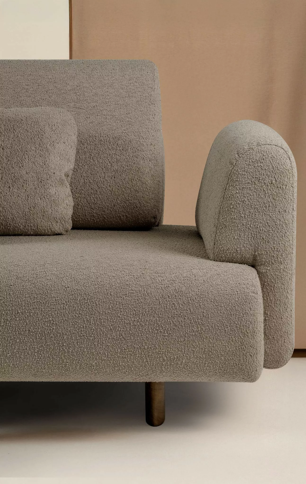 O Sofá Gengibre explora o encaixe entre assento, encosto e braços, com composições variadas e formas curvas com linhas contínuas que valorizam a simplicidade com foco nos detalhes. As almofadas, generosas e macias, apoiam-se no encosto estruturado, criando uma sensação de conforto e aconchego que convida à desaceleração. Nas quinas, o vazio formado entre as peças destaca a estrutura arredondada do assento e acrescenta leveza ao conjunto. Assim como o gengibre, que concentra intensidade em sua raiz, o sofá tem uma presença discreta, mas marcante. Um convite à experiência sensorial do habitar, onde frescor e equilíbrio preenchem o ambiente.