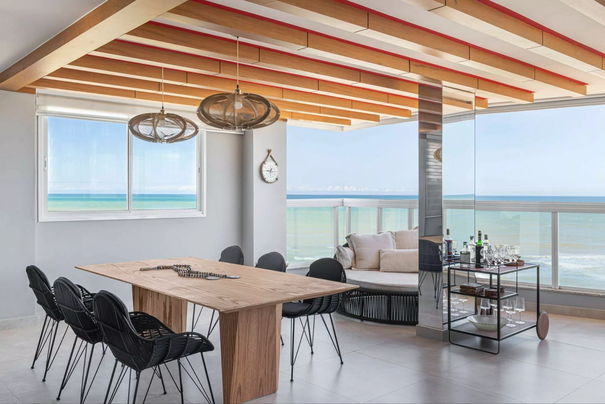 Nesta cobertura projetada por Mutabile Arquitetura, cadeiras Apuí do Estúdio Lider e day bed Tropical convidam aos moradores e convidados a apreciarem à vista. Mesa Nicke e carrinho Aio completam a cena.