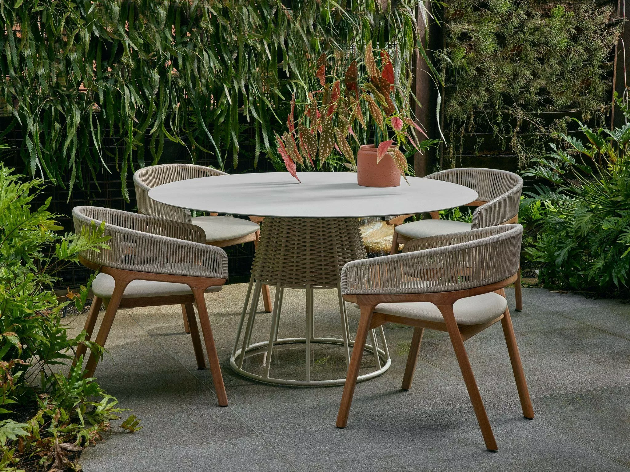 A mesa de jantar Tropical e a cadeira Arruda são ótimas escolhas para varandas e áreas privativas.