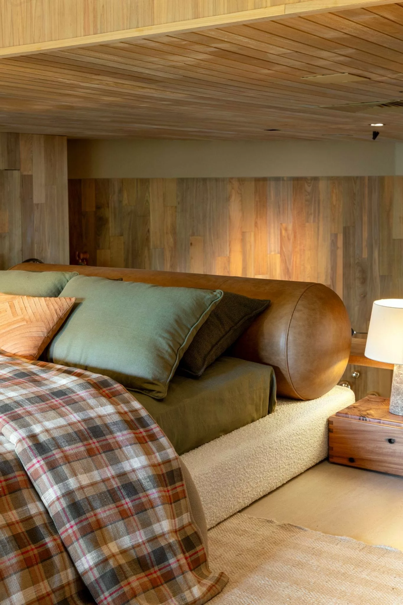 Com desenho leve e materiais naturais, o banco contribui para uma atmosfera mais fluida e menos carregada. É um convite ao uso intuitivo, sem rigidez, que dialoga com a ideia de um quarto vivido com calma.
