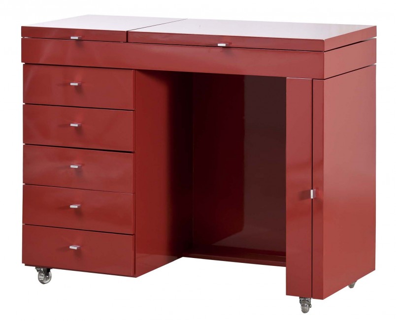 Material: Estrutura em lâmina natural de madeira, acessórios compostos de corrediças e dobradiças metálicas, rodízios de gel transparentes, puxadores, espelho. Gavetas e porta-joias revestidos de camurça. Cores variadas.