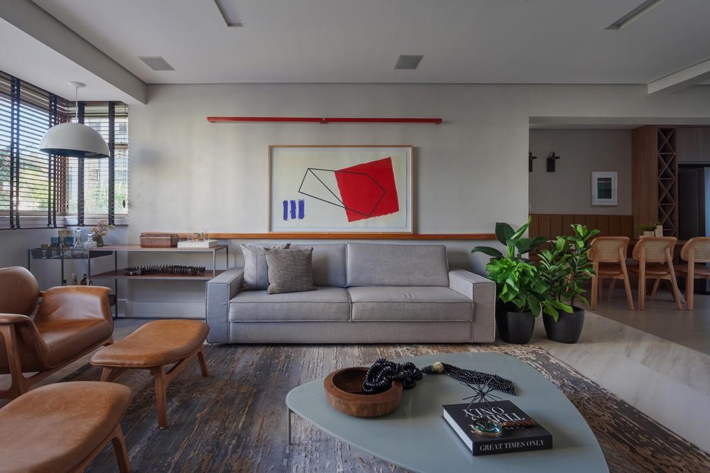 Como esta categoria de livro chama atenção pelo seu tamanho, sofisticação do papel e do design gráfico, ele é uma ótima opção de elemento decorativo. Na sala de estar, pode ser posicionado sobre a mesa de centro, ganhando a companhia de adornos como a lupa e a pequena escultura escolhida pela arquiteta Camila Ferreira neste projeto, que também contou com a presença do sofá Mix e das poltronas e bancos Viki.