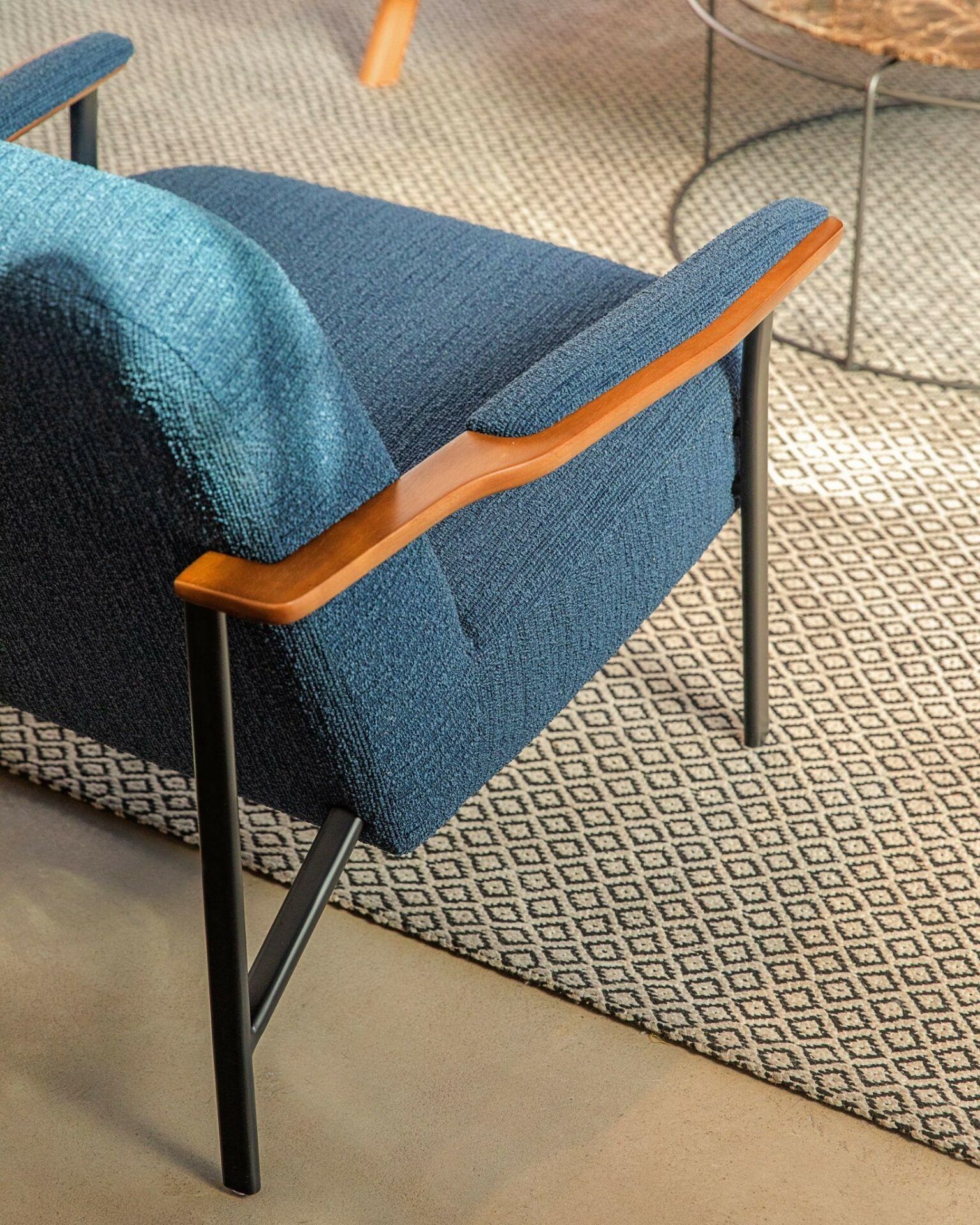 Outra estratĆ©gia usada em espaƧos compactos, Ć© o uso de tapetes em cores claras para conferir a sensação de um espaƧo maior, como neste ambiente em que os tapetes delimitam o espaƧo das poltronas BenĆcio.
